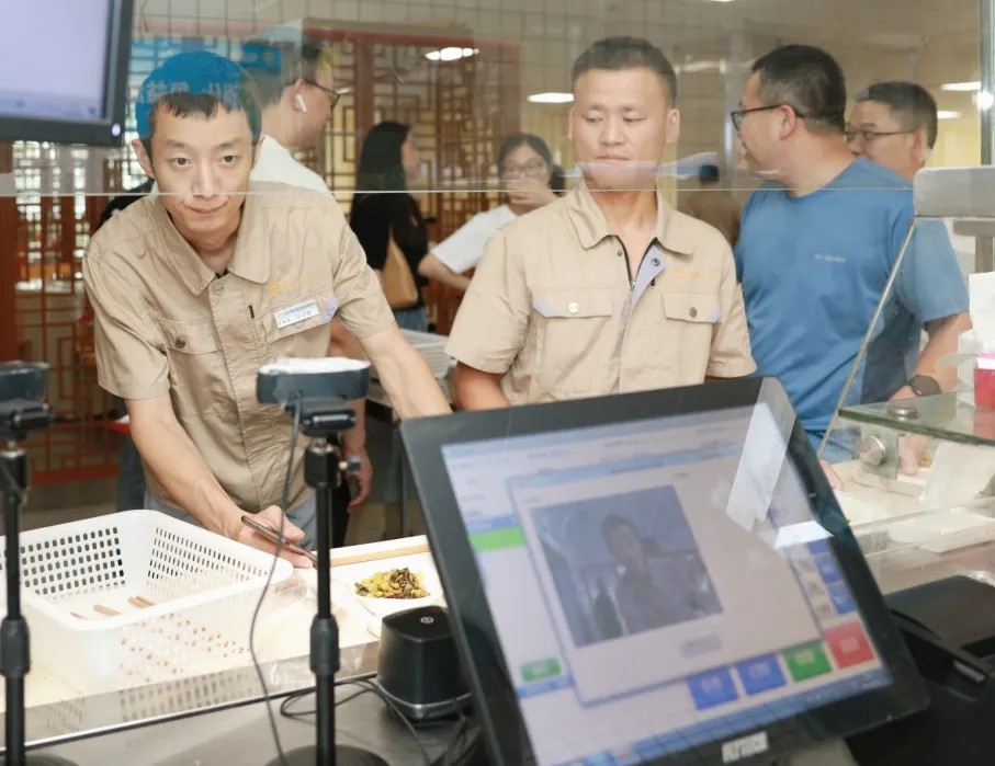 裝修一新的就餐環(huán)境,干凈整潔,隔斷區(qū)分就餐區(qū)域,可支持私密小聚餐。最值得一提的是,為了增強高峰期的就餐效率,提升員工就餐體驗,食堂對原有的餐廳卡機系統(tǒng)進行了升級,啟用了智能人臉識別就餐系統(tǒng)。免去飯卡沖繳的煩惱,只要輕輕一掃臉,就可以免費享用員工餐。