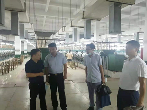 8月20日上午,阜陽市發(fā)改委黨組書記、主任高文軍冒雨到安徽京九絲綢股份公司調(diào)研,阜陽經(jīng)開區(qū)投資促進(jìn)中心副總經(jīng)理宋良策陪同調(diào)研。安徽京九絲綢股份公司總經(jīng)理周炎向領(lǐng)導(dǎo)一行匯報公司生產(chǎn)經(jīng)營情況。