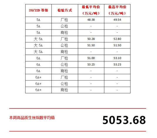 【本周高品位生絲協作單位成交價格區(qū)間(試運行)】