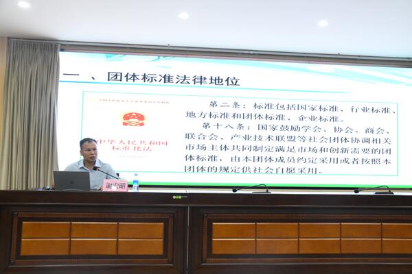 會(huì)議邀請廣西標(biāo)準(zhǔn)化協(xié)會(huì)會(huì)長、標(biāo)準(zhǔn)化高級工程師謝宏昭作專題講座。謝宏昭從標(biāo)準(zhǔn)的定義、政策法規(guī)、發(fā)展現(xiàn)狀、制修訂及應(yīng)用推廣等方面,對廣西地方標(biāo)準(zhǔn)、團(tuán)體標(biāo)準(zhǔn)的制修訂程序及注意事項(xiàng)進(jìn)行了深入淺出的講解,結(jié)合案例分析,形象生動(dòng)。