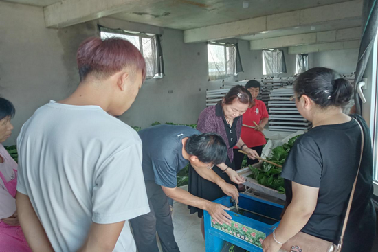 在公司技術(shù)負(fù)責(zé)人崔雙囤的陪同下,實地察看了3齡蠶兒的發(fā)育及蠶室環(huán)境狀況。所長王玉霞現(xiàn)場進(jìn)行技術(shù)培訓(xùn),指出哪些是眠蠶,哪些是將眠蠶,當(dāng)場示范眠蠶與未眠蠶的不同技術(shù)處理方法,從喂葉、溫濕度、及眠中技術(shù)處理一一進(jìn)行了指導(dǎo)。