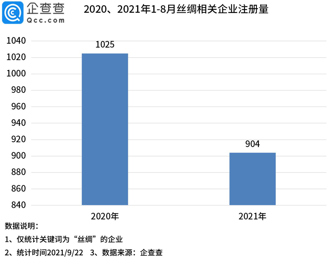 絲綢是一種歷史悠久的紡織品,絲綢織品隨時(shí)間、技術(shù)演進(jìn)而不斷迭代,形成了獨(dú)特的絲綢文化。企查查數(shù)據(jù)顯示,目前全國(guó)范圍內(nèi)共有2.6萬(wàn)家絲綢相關(guān)企業(yè),其中浙江省以8416家相關(guān)企業(yè)排名第一,江蘇、新疆分列二三名。城市分布上,蘇州市、杭州市和和田地區(qū)位列前三。從注冊(cè)量上看,2020年注冊(cè)量1420家,同比下降59%。2021年前8個(gè)月共新增904家相關(guān)企業(yè),同比下降12%。