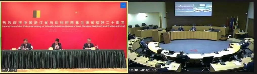 慶?;顒?dòng)上,浙江省省委書記、省人大常委會(huì)主任袁家軍,西弗蘭德省省長德卡盧維、中國駐比利時(shí)大使曹忠明、比利時(shí)駐滬總領(lǐng)事顏博諾、西弗蘭德省前省長保羅·拜恩通過視頻或線上方式致辭。副省長朱從玖與德卡盧維簽署《兩省進(jìn)一步深化友好交流合作協(xié)議》。中國絲綢博物館館長趙豐受邀參加活動(dòng),向比利時(shí)駐滬總領(lǐng)事館捐贈(zèng)了一批以中國絲綢和絲綢之路為主題的圖書。