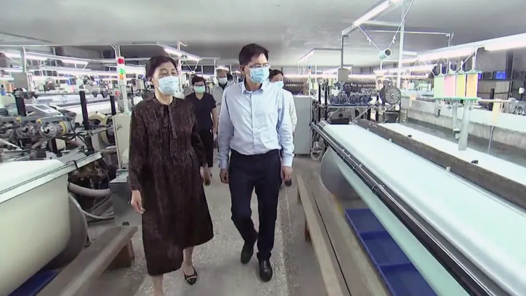藍(lán)天立在嘉聯(lián)公司織綢車間了解民族面料生產(chǎn)情況