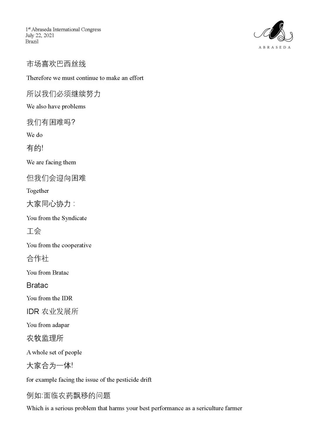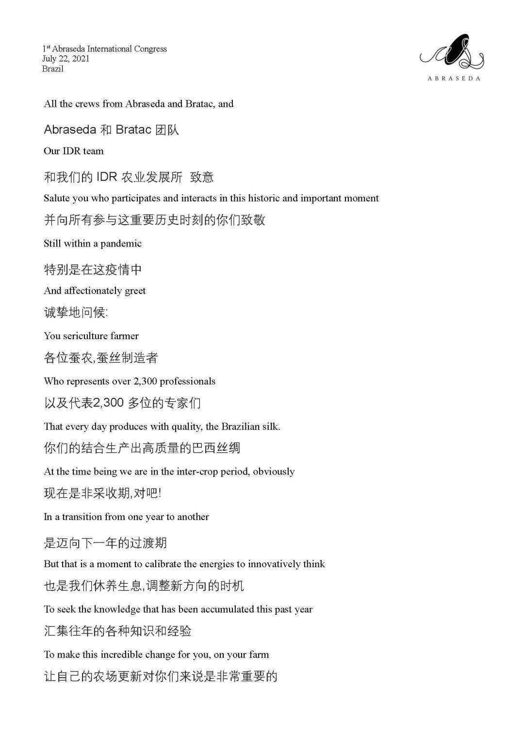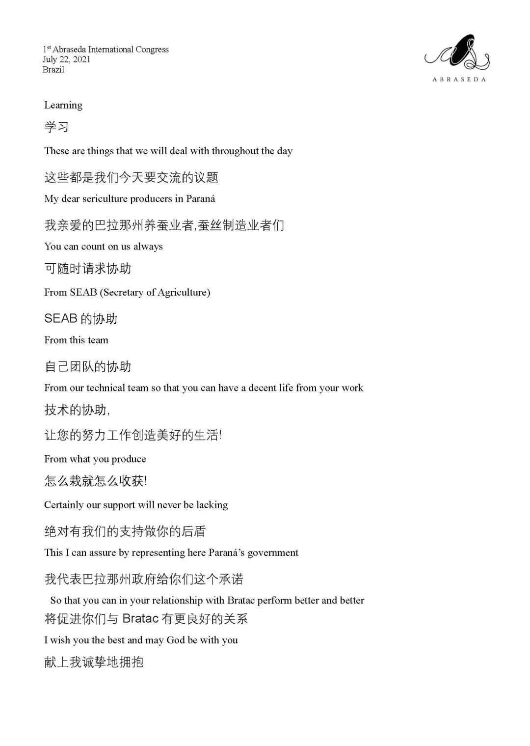第一屆巴西絲綢協(xié)會國際會議 | 巴拉那州農(nóng)業(yè)局局長Norberto Ortigara致辭