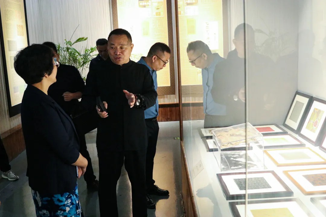 蘇州上久楷絲綢科技文化有限公司董事長吳建華熱情接待并向伍會長一行講解介紹了宋錦的歷史與文化。