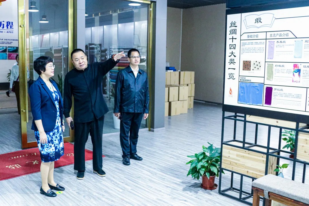 參觀過程中,伍會長對上久楷在絲綢行業(yè)一直秉承織造高端產(chǎn)品給予高度與肯定。