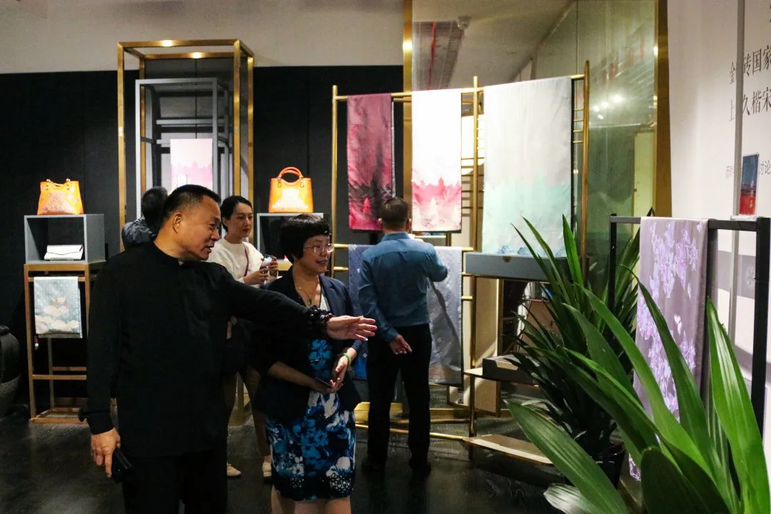 隨后伍會長一行參觀了上久楷絲綢面料館、宋錦唐卡藝術(shù)館、宋錦國禮精品展示區(qū)、高級服裝定制區(qū)等,董事長吳建華詳細(xì)介紹了上久楷品牌發(fā)展歷程以及企業(yè)所獲得的榮譽(yù)。