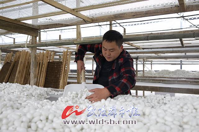 近日,在燦奎家庭農(nóng)場(chǎng),村民正忙著采摘豐收的蠶繭,周文康將分揀好的晚秋蠶繭進(jìn)行裝袋,等待收購(gòu)。忙完了大棚里的活,周文康又帶領(lǐng)著村民來(lái)到桑樹(shù)地里,栽種下青菜頭菜苗。