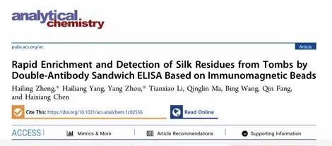 日前,中國絲綢博物館科研團(tuán)隊(duì)在國際TOP期刊Analytical Chemistry(分析化學(xué))上發(fā)表題為“Rapid Enrichment and Detection of Silk Residues from Tombs by Double-Antibody Sandwich ELISA Based on Immunomagnetic Beads”(基于免疫磁珠的雙抗夾心ELISA法快速富集和檢測古代墓葬中蠶絲殘留物)的研究論文,為墓葬環(huán)境中絲綢殘留物的發(fā)現(xiàn)提供了一項(xiàng)創(chuàng)新方法,對(duì)古代絲綢溯源研究具有重要意義。