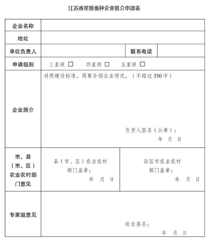 1.江蘇省星級蠶種企業(yè)推介申請表