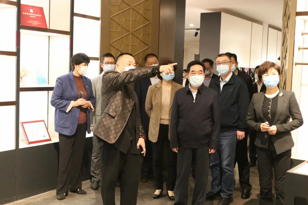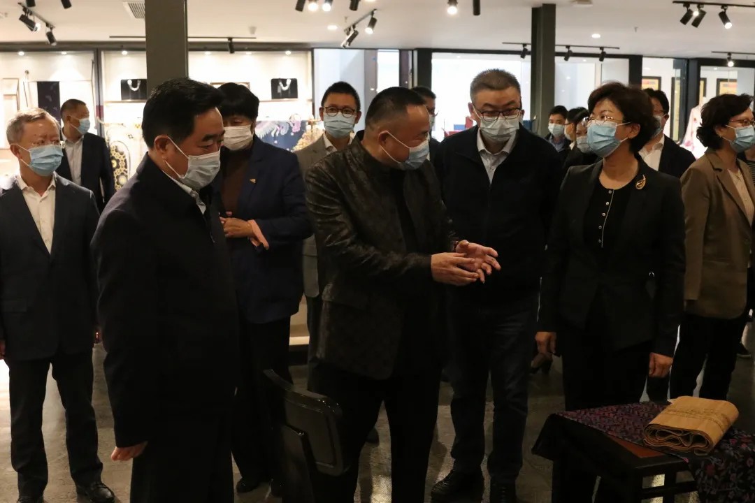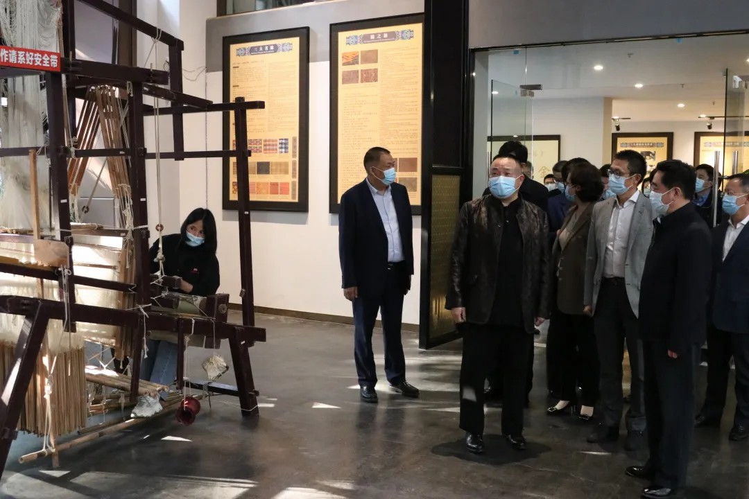 調(diào)研中,張愛軍部長肯定了國家非物質(zhì)文化遺產(chǎn)——宋錦近年來取得的傳承創(chuàng)新發(fā)展,對宋錦織造技藝國家級傳承人錢小萍先生為宋錦文化傳承作出的積極貢獻給予了高度的贊揚。