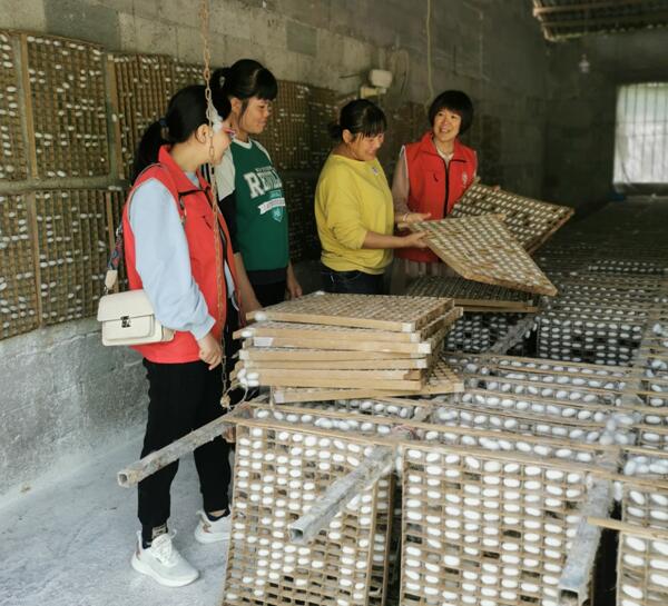服務(wù)團(tuán)一行先后到宜州區(qū)石別沙坪小蠶共育室、宜州區(qū)規(guī)模化機(jī)械化信息化桑蠶示范基地、宜州區(qū)已辛桑蠶養(yǎng)殖專業(yè)合作社、宜州區(qū)石別超凡桑蠶專業(yè)合作社、宜州區(qū)石別鎮(zhèn)土橋村種養(yǎng)大戶等進(jìn)行現(xiàn)場指導(dǎo)和技術(shù)服務(wù)。結(jié)合當(dāng)前宜州區(qū)蠶桑生產(chǎn)特點(diǎn),服務(wù)團(tuán)針對蠶桑新品種示范推廣,新機(jī)械養(yǎng)蠶設(shè)施改進(jìn)示范,蠶病綜合防控新技術(shù)等方面進(jìn)行了全面指導(dǎo)?,F(xiàn)已是宜州最后一批秋繭收尾,蠶繭價(jià)格高達(dá)56元/公斤,蠶農(nóng)種桑養(yǎng)蠶增收顯著,增強(qiáng)了明年種桑養(yǎng)蠶的信心和動(dòng)力,助力鞏固拓展脫貧攻堅(jiān)成果,推進(jìn)鄉(xiāng)村產(chǎn)業(yè)振興。