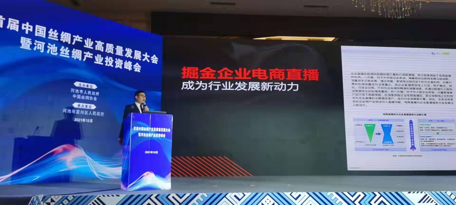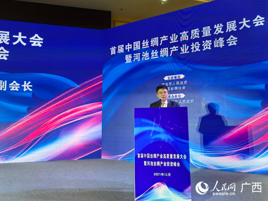 絲綢宜州,時尚新都。為貫徹落實《商務(wù)部關(guān)于繭絲綢行業(yè)“十四五”發(fā)展的指導(dǎo)意見》(商消費(fèi)函[2021]482號)文件精神,適應(yīng)新發(fā)展階段、貫徹新發(fā)展理念、構(gòu)建新發(fā)展格局,加強(qiáng)上下游產(chǎn)業(yè)鏈企業(yè)的溝通與合作,推動新時期我國繭絲綢行業(yè)高質(zhì)量發(fā)展,12月10日,由河池市人民政府和中國絲綢協(xié)會主辦,河池市宜州區(qū)人民政府承辦的2021中國(河池)絲綢產(chǎn)業(yè)高質(zhì)量發(fā)展大會暨河池絲綢產(chǎn)業(yè)投資峰會隆重舉行。