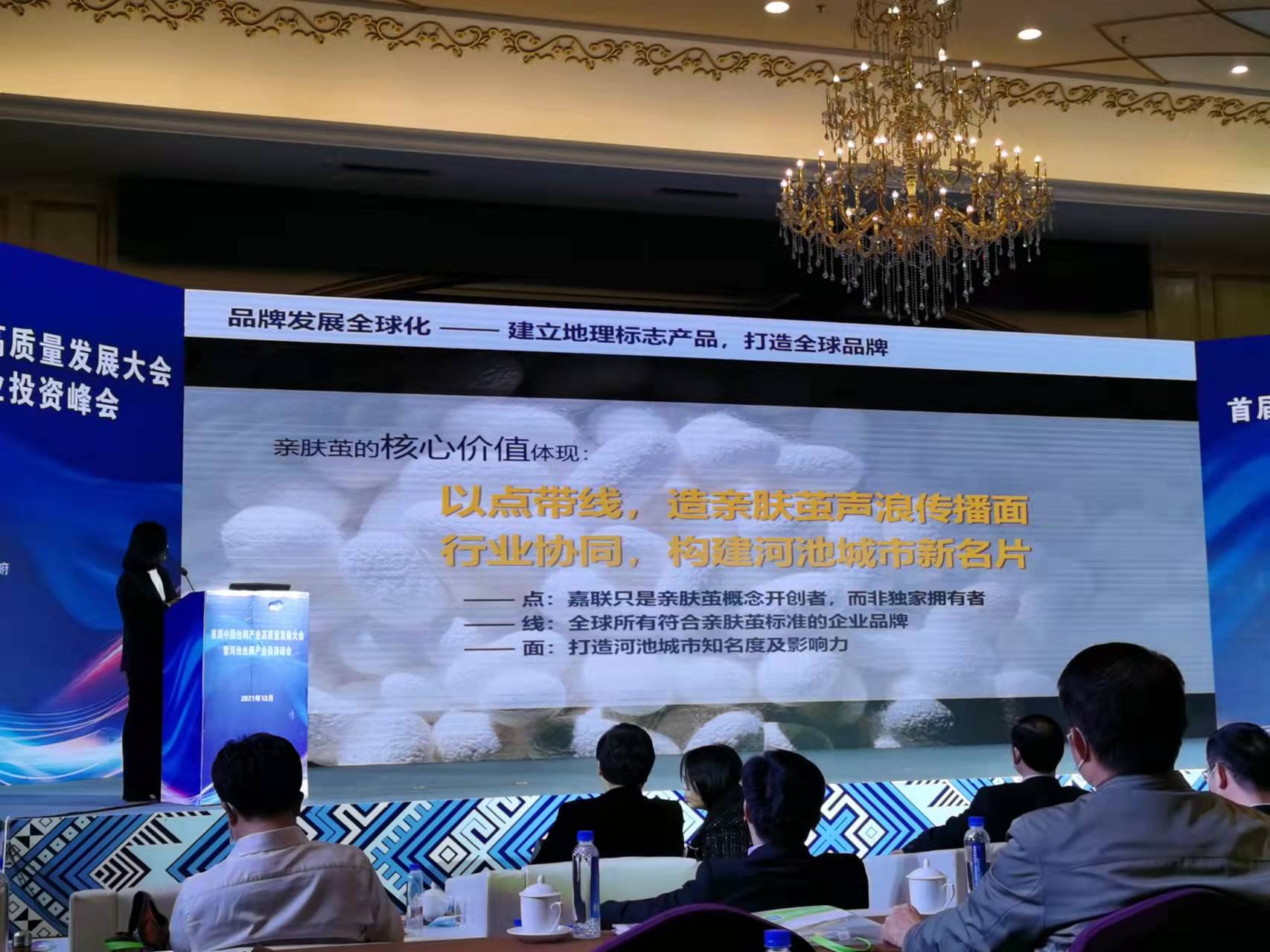 廣西嘉聯(lián)絲綢股份有限公司董事長王卓女士作《宜山宜水,助力河池蠶絲產(chǎn)業(yè)再創(chuàng)新高;一絲一繭,弘揚(yáng)中華蠶絲文化振興輝煌》主題演講。