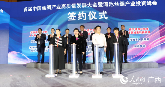 第三,搭建了地方與企業(yè)對接合作的良好平臺。作為西部陸海新通道的重要樞紐和絲綢產(chǎn)業(yè)優(yōu)勢集中區(qū),隨著繭絲綢產(chǎn)業(yè)園和輕紡城項目相繼落戶,河池絲綢產(chǎn)業(yè)迎來更為廣闊的發(fā)展前景。我們將結(jié)合河池區(qū)位條件、產(chǎn)業(yè)基礎(chǔ)、資源優(yōu)勢,在蠶桑種業(yè)繁育、絲綢加工、桑蠶資源多元化應(yīng)用等領(lǐng)域,與區(qū)內(nèi)外的絲綢企業(yè)開展深度務(wù)實合作,共建千億絲綢產(chǎn)業(yè)集群。
