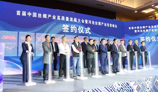秦書記表示,河池市立足資源優(yōu)勢,通過“樹標(biāo)桿、強(qiáng)品牌,補(bǔ)鏈條、聚集群,搭平臺、走出去“等多項舉措全面推進(jìn)絲綢產(chǎn)業(yè)實現(xiàn)全產(chǎn)業(yè)鏈發(fā)展,大力培育千億桑蠶繭絲綢產(chǎn)業(yè)集群。我們將一如既往地支持絲綢產(chǎn)業(yè)和絲綢協(xié)會的發(fā)展,繼續(xù)深化“放管服”改革,為絲綢全產(chǎn)業(yè)鏈項目開通審批“綠色通道”,以更高效的服務(wù)、更優(yōu)良的營商環(huán)境助推絲綢產(chǎn)業(yè)做大做強(qiáng)。