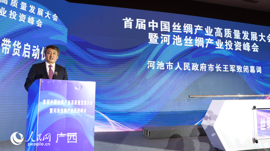 王市長對參會嘉賓表示歡迎,并對長期以來關(guān)心支持河池經(jīng)濟(jì)社會發(fā)展的各界人士表示感謝。他說道,近年來,河池緊緊抓住“東桑西移”戰(zhàn)略機(jī)遇,大力發(fā)展種桑養(yǎng)蠶,桑園面積、鮮繭產(chǎn)量逐年增長,桑蠶規(guī)模連續(xù)16年穩(wěn)居全國設(shè)區(qū)市首位。期待通過這次高規(guī)格、專業(yè)化、國際化的交流平臺,共同謀劃絲綢產(chǎn)業(yè)高質(zhì)量發(fā)展新篇章,為共建中國絲綢新都凝聚共識、匯聚力量。