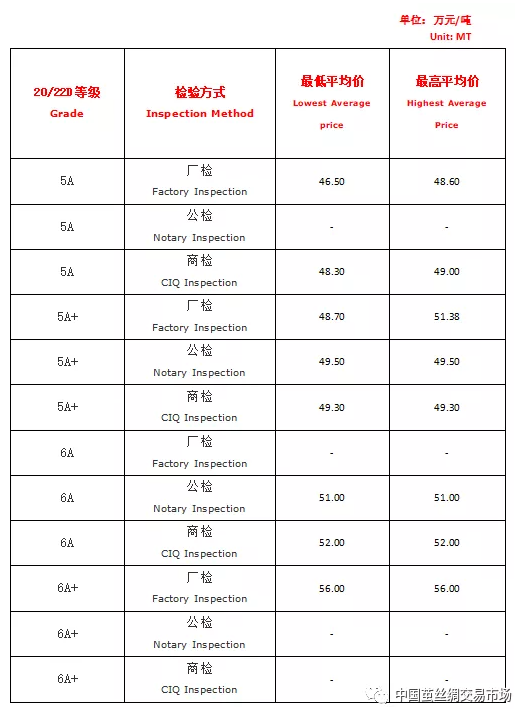 【本周高品位生絲協(xié)作單位成交價(jià)格區(qū)間(試運(yùn)行)】