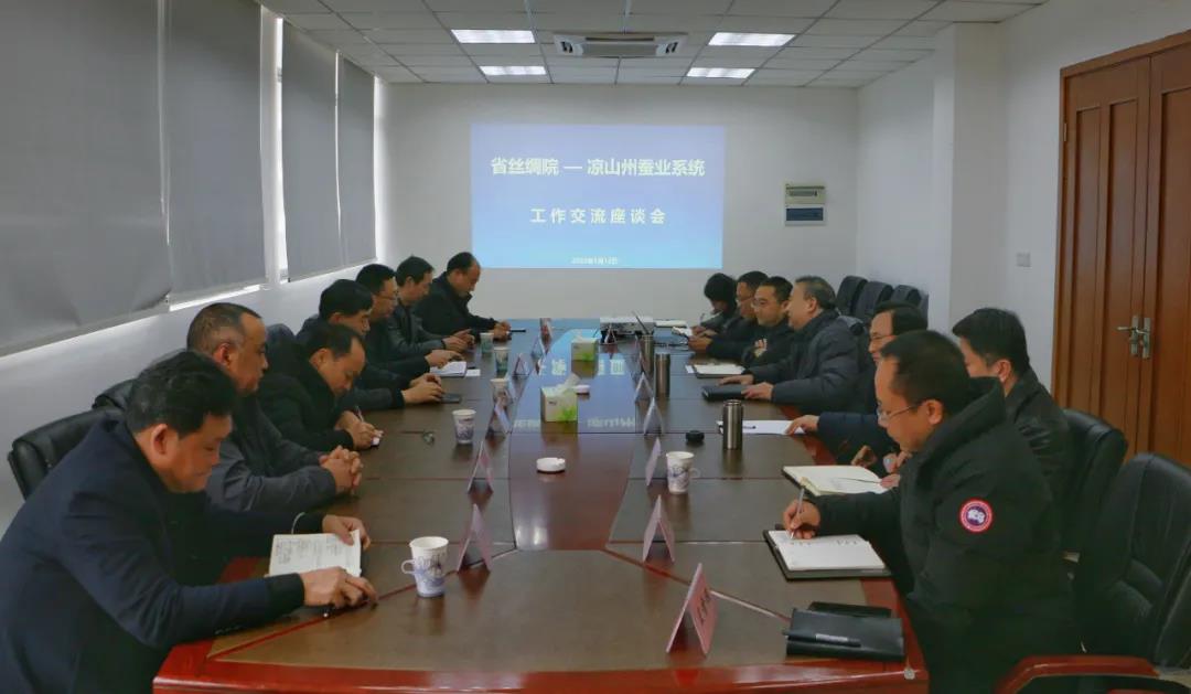 1月12日,四川省絲綢科學(xué)研究院與涼山州蠶業(yè)系統(tǒng)工作交流會(huì)在成都召開。中國絲綢協(xié)會(huì)副會(huì)長、四川省絲綢協(xié)會(huì)會(huì)長、四川省絲綢科學(xué)研究院名譽(yù)院長、首席專家陳祥平,四川省絲綢協(xié)會(huì)副會(huì)長、四川省絲綢科學(xué)研究院黨委書記、董事長程明,涼山州蠶業(yè)產(chǎn)業(yè)發(fā)展中心主任王其明、副主任向榮輝,以及寧南縣南絲路集團(tuán)公司、涼山州蠶種場、西昌市繭絲綢總公司、西昌市蠶種場、冕寧縣蠶業(yè)有限責(zé)任公司負(fù)責(zé)人、省絲綢科學(xué)研究院相關(guān)領(lǐng)導(dǎo)和專家參加會(huì)議。