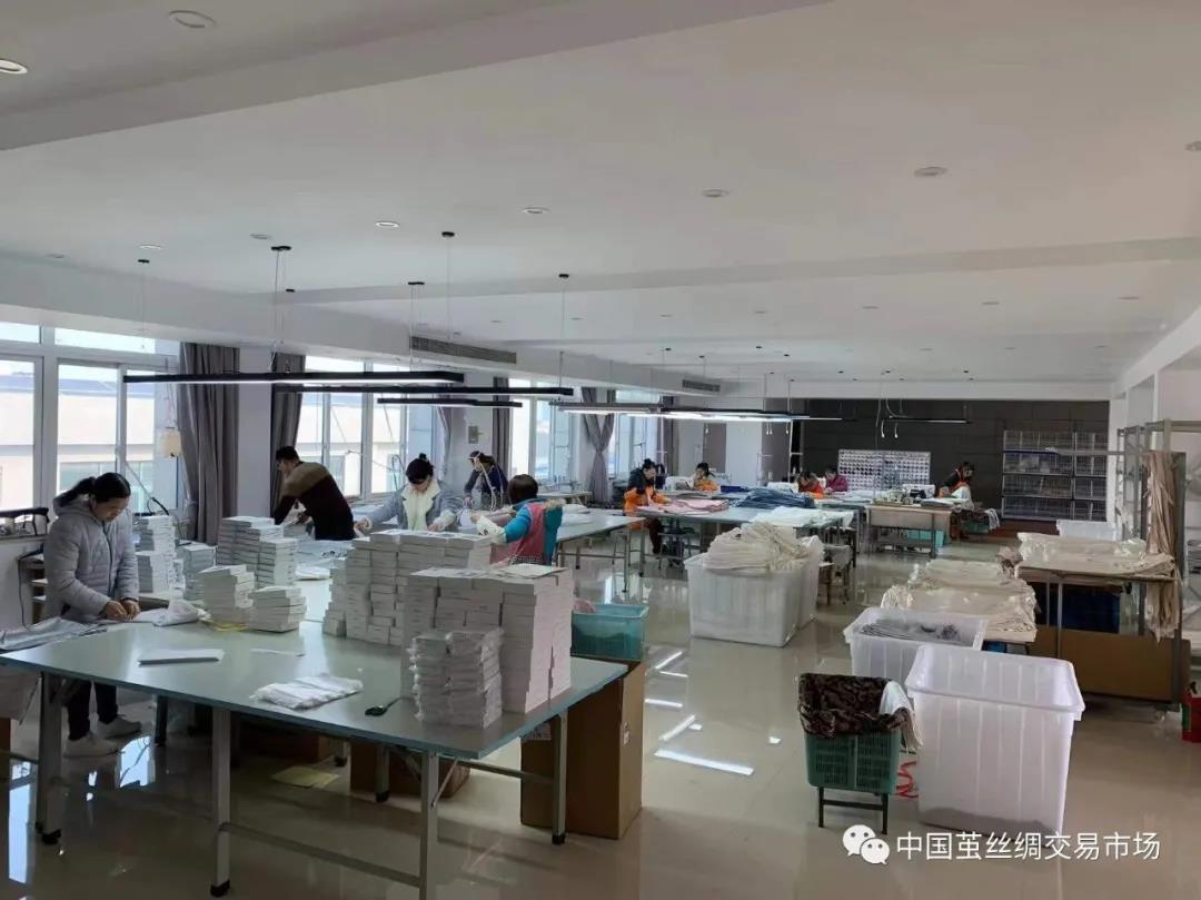 “利用新宇的綢緞原料優(yōu)勢,剛創(chuàng)立的榮績就位于新宇公司內(nèi),辦公與生產(chǎn)區(qū)域在公司5樓,展示廳位于公司1樓,以真絲面料加工和真絲成品生產(chǎn)為一體?,F(xiàn)在主要業(yè)務(wù)分為兩個方面,一方面是白坯的染色及后道工序,另一方面就是絲綢成品的生產(chǎn),包括真絲床上用品以及口罩、眼罩、發(fā)圈等小件的生產(chǎn)和供應(yīng)。”