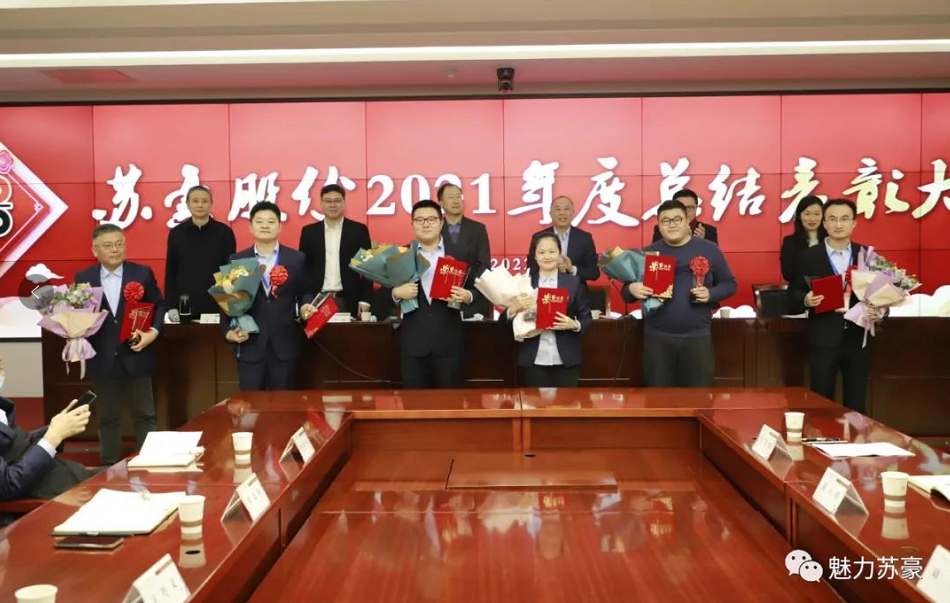 會議由公司黨委副書記、副總經(jīng)理張培根同志主持。會議首先傳達了控股集團2022年經(jīng)濟工作會議精神;公司黨委委員、常務副總經(jīng)理林華偉同志向大會作了經(jīng)營工作匯報,報告全面總結了蘇豪股份2021年在疫情防控、經(jīng)營管理、高質量改革發(fā)展等方面所做的主要工作及取得的成績,也詳細部署了蘇豪股份2022年重點工作和目標任務;公司黨委委員、副總經(jīng)理徐習洪同志宣讀了表彰決定;先進代表于堂茂、李振委、王愛云同志分別作了交流發(fā)言。