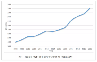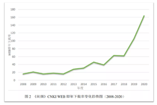 由圖2(中國知網(wǎng)CNKI的WEB即年下載率)可見《絲綢》論文的下載頻次在逐年提升。