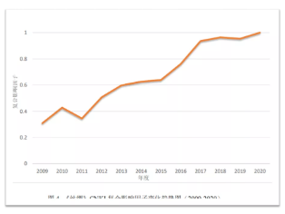 近年來,在國內(nèi)外各大文獻(xiàn)數(shù)據(jù)庫中,《絲綢》的影響因子相關(guān)指標(biāo)均穩(wěn)步提升。通過統(tǒng)計(jì)分析各類期刊、博、碩士學(xué)位論文與會(huì)議論文對《絲綢》期刊論文的引用,反映了期刊在國內(nèi)的學(xué)術(shù)創(chuàng)新影響力。如圖4所示,2009年至2020年,《絲綢》的CNKI復(fù)合影響因子有了明顯提升,從0.309提升至1.000。
