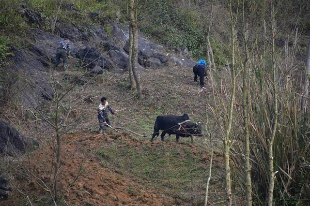 新州鎮(zhèn)水洞村桑農在翻耕桑田準備種植桑樹