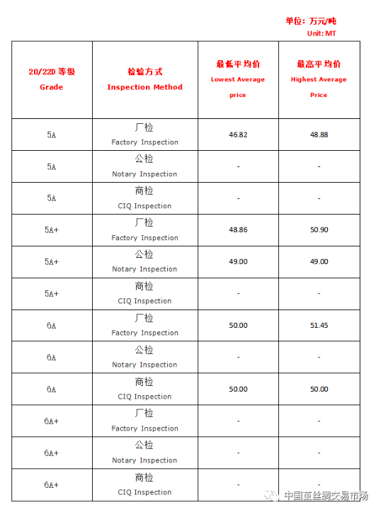 【本周高品位生絲協(xié)作單位成交價(jià)格區(qū)間(試運(yùn)行)】