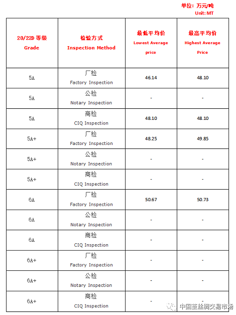 【本周高品位生絲協(xié)作單位成交價(jià)格區(qū)間(試運(yùn)行)】
