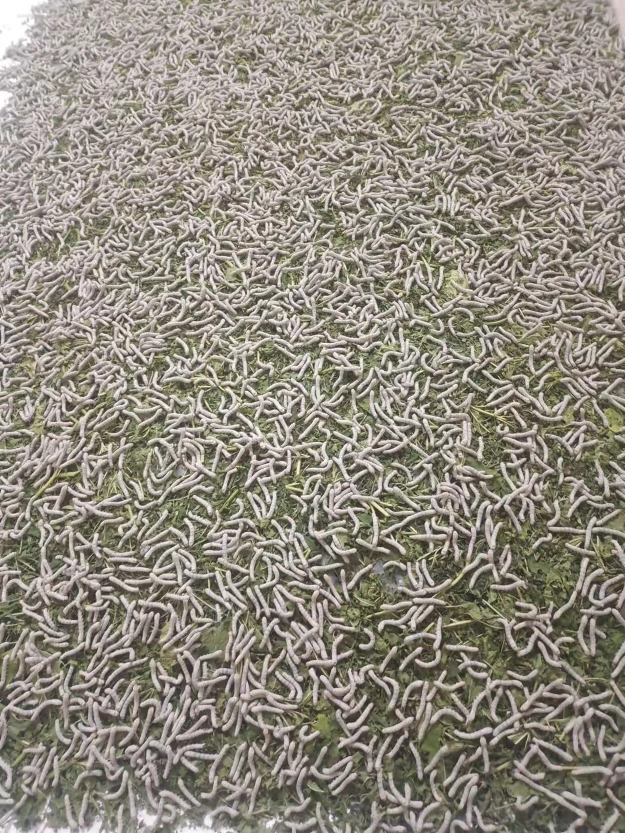 宜州區(qū)石別鎮(zhèn)永定村某蠶農(nóng)家養(yǎng)的小蠶,三齡第三天。