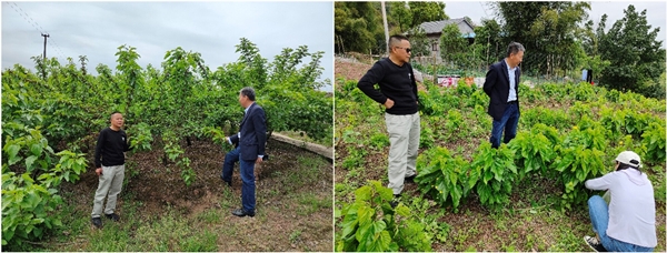 3日下午,調(diào)研組在合川區(qū)經(jīng)濟作物發(fā)展指導站張?zhí)蒲芯繂T陪同下來到云門鎮(zhèn)鐵家村果桑采摘園和桑園基地,就部分桑園薊馬和紅蜘蛛等蟲害較為嚴重,提出要進一步加強桑園管理,做好病蟲害預測預報,在確保養(yǎng)蠶安全的情況下,及時進行化學防治。