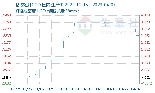 上周(4月3—7日),粘膠工廠(chǎng)新一輪價(jià)格基本確定,高端大廠(chǎng)報(bào)價(jià)13400元/噸左右,實(shí)際成交有局部?jī)?yōu)惠,返利后實(shí)單及大客戶(hù)商談在13100-13200元/噸左右。據(jù)生意社商品行情分析系統(tǒng)顯示,截止4月7日,1.2D*38mm粘膠短纖國(guó)內(nèi)地區(qū)出廠(chǎng)報(bào)價(jià)為13240元/噸,較上周下跌80元/噸。粘膠短纖行業(yè)開(kāi)機(jī)率基本維持,供應(yīng)充足,前期部分下游剛需等待較久,目前集中簽單,簽單量較前期有所好轉(zhuǎn)。