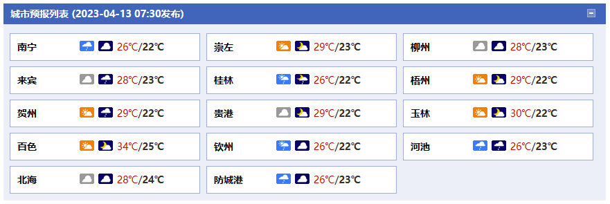 廣西氣象臺(tái)13日05時(shí)發(fā)布預(yù)報(bào):