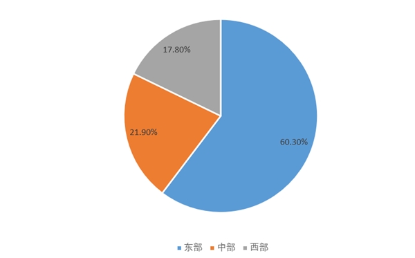 圖表4 東中西部地區(qū)市場(chǎng)數(shù)量占比