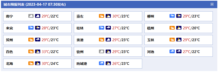 廣西:白天全區(qū)多云轉(zhuǎn)陰天大部有小雨