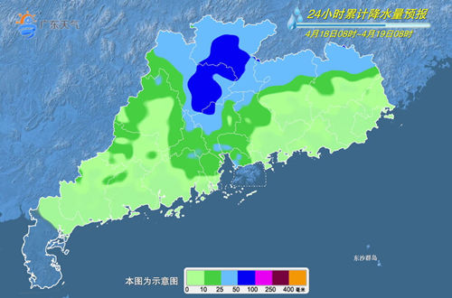 18-19日粵北、珠三角、粵東有大雨到暴雨局部大暴雨,粵西中雷雨局部大雨或暴雨。并伴有雷電、短時強降水、8-10級短時大風和冰雹等強對流天氣。早晨最低氣溫:南部沿海市縣22℃~24℃,其余市縣20℃~22℃。