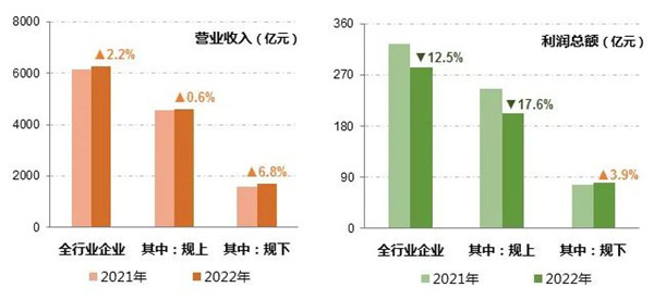 跟蹤數(shù)據(jù)顯示,2022年集群內(nèi)紡織企業(yè)營業(yè)收入同比僅增長2.2%,利潤總額同比減少12.5%,營業(yè)收入利潤率為4.5%,較2021年下滑0.8個百分點。其中,集群內(nèi)規(guī)模以上企業(yè)利潤萎縮態(tài)勢更為明顯,2022年利潤總額同比減少17.6%,營業(yè)收入利潤率為4.4%,較2021年下滑1個百分點;同期規(guī)模以下企業(yè)利潤總額同比實現(xiàn)3.9%的小幅增長,營業(yè)收入利潤率為4.8%,高于規(guī)模以上企業(yè)平均水平。在全行業(yè)市場形勢嚴峻、運行壓力加大的背景下,集群內(nèi)企業(yè)分化發(fā)展態(tài)勢依然顯著,中小微企業(yè)利潤改善壓力較難以緩解,2022年集群內(nèi)規(guī)模以下企業(yè)戶均年營業(yè)收入、戶均利潤總額分別僅為同期集群內(nèi)規(guī)模以上企業(yè)的3.4%和3.6%。