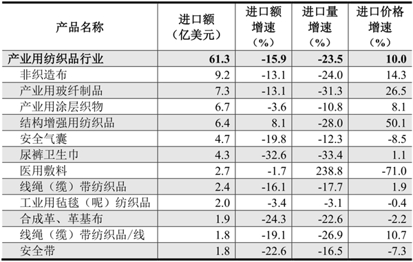 2022年我國產(chǎn)業(yè)用紡織品行業(yè)及主要產(chǎn)品進口情況