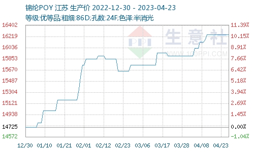 上周(2023年4月17—23日),成本維穩(wěn)整理,錦綸長(zhǎng)絲價(jià)格堅(jiān)挺。錦綸廠家貨源供應(yīng)充足,下游織造領(lǐng)域開(kāi)工穩(wěn)定,部分地區(qū)個(gè)別規(guī)格暢銷(xiāo),但整體市場(chǎng)仍處于供大于求狀態(tài),實(shí)際成交據(jù)單詳談。