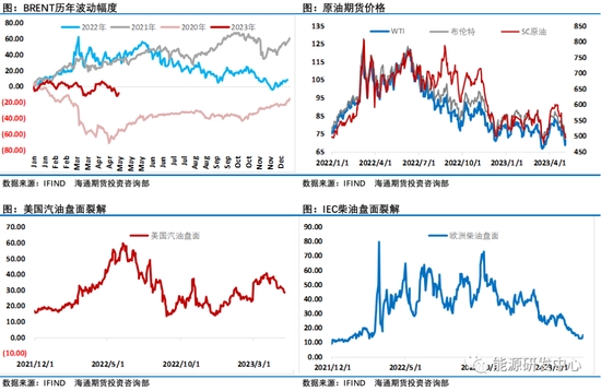 雖然宏觀利空讓經(jīng)濟(jì)衰退擔(dān)憂升溫,這進(jìn)一步打擊了市場信心,下游成品油裂解差持續(xù)走弱也印證了歐美需求的疲弱。但OPEC+進(jìn)入5月份之后的366萬桶/日減產(chǎn)行動還是讓原油市場會維持供應(yīng)收緊的基本局面,這也意味著原油市場2023年內(nèi)很難存在明顯的過剩壓力,原油供需層面自身下行驅(qū)動有限,因此一旦宏觀利空擔(dān)憂消退市場情緒回暖,油價還是有很大概率會隨著資金的回補走出反彈修復(fù)行情。