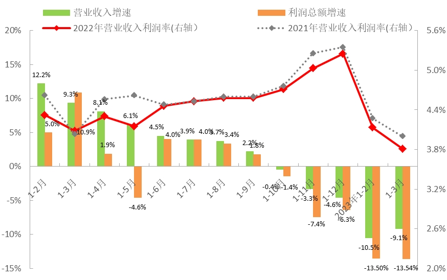 圖4 2023年1-3月服裝行業(yè)主要效益指標(biāo)情況