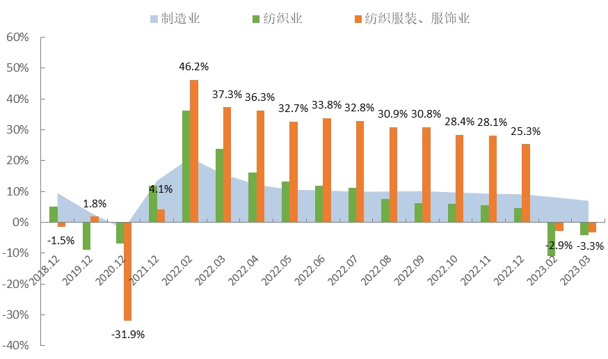 圖1 2023年1-3月服裝行業(yè)生產(chǎn)增速情況