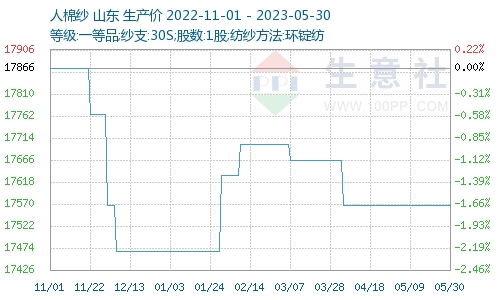 下游人棉紗相對穩(wěn)定,成交一般,價格基本維持,但局部企業(yè)存在庫存壓力下有降價促銷現(xiàn)象,據(jù)生意社商品行情分析系統(tǒng)顯示,截止5月30日人棉紗(30S,環(huán)錠紡,一等品)出廠均價為17566元/噸,與月初價格持平。目前來看,紡織終端市場需求難有明顯改觀,紗線企業(yè)亦難有強(qiáng)勢作為,多根據(jù)自身出貨情況調(diào)整商談空間。
