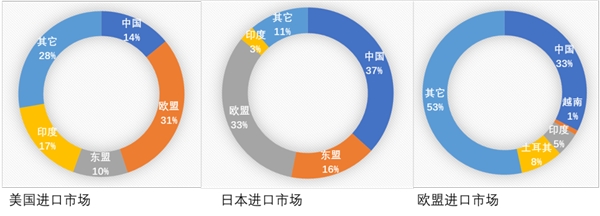 2023年美國、日本及歐盟進口份額情況