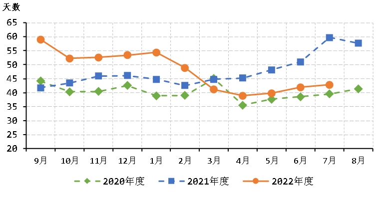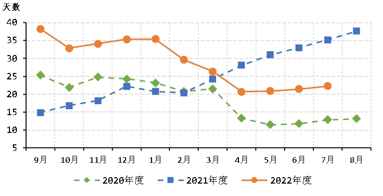 圖8 近三年度紡織企業(yè)紗庫(kù)存折天數(shù)變化
