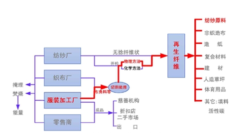 而當(dāng)?shù)仡I(lǐng)軍企業(yè)也不再單純定位于再生紡織品生產(chǎn)者,而是融入產(chǎn)業(yè)鏈,和終端服裝品牌展開(kāi)緊密合作,將品牌服裝邊角料進(jìn)行科學(xué)收集整理后再加工成色紡紗線等產(chǎn)品,重新用于品牌服裝生產(chǎn),打造服裝原料循環(huán)閉環(huán)概念,取得了很好的效果。