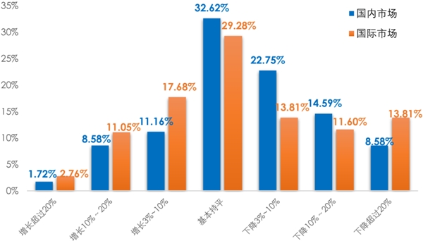 圖3 2023年上半年產(chǎn)業(yè)用紡織品行業(yè)國(guó)內(nèi)、國(guó)際市場(chǎng)需求情況