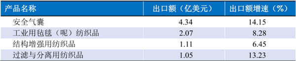 表2 2023年1~6月產(chǎn)業(yè)用紡織品行業(yè)及主要產(chǎn)品出口情況